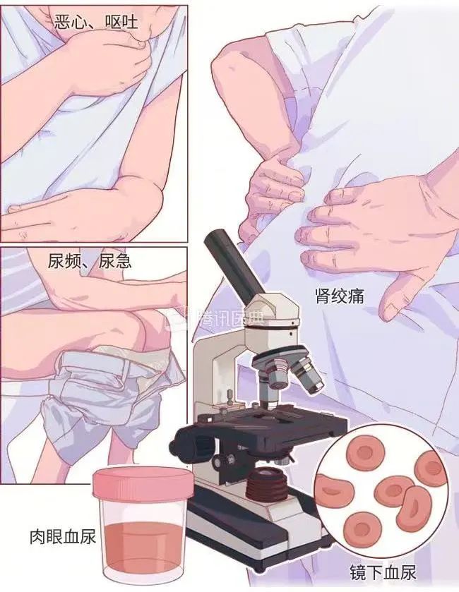 发生泌尿系结石时,通常有以下几类常见症状: